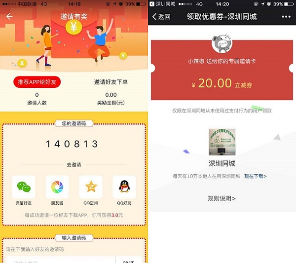 平台可以利用邀请好友下单返点宣传,引爆用户们的激情。创实互联的4.2版本对传播功能的邀请有奖再次升级,用户可以通过发送平台指定优惠券给从未在平台上进行消费的好友。邀请好友加入平台成功下单后,好友可享受优惠,邀请人还能获得消费金额的返点。给朋友享受优惠的同时,自己也赚了零花钱,何乐而不为呢?